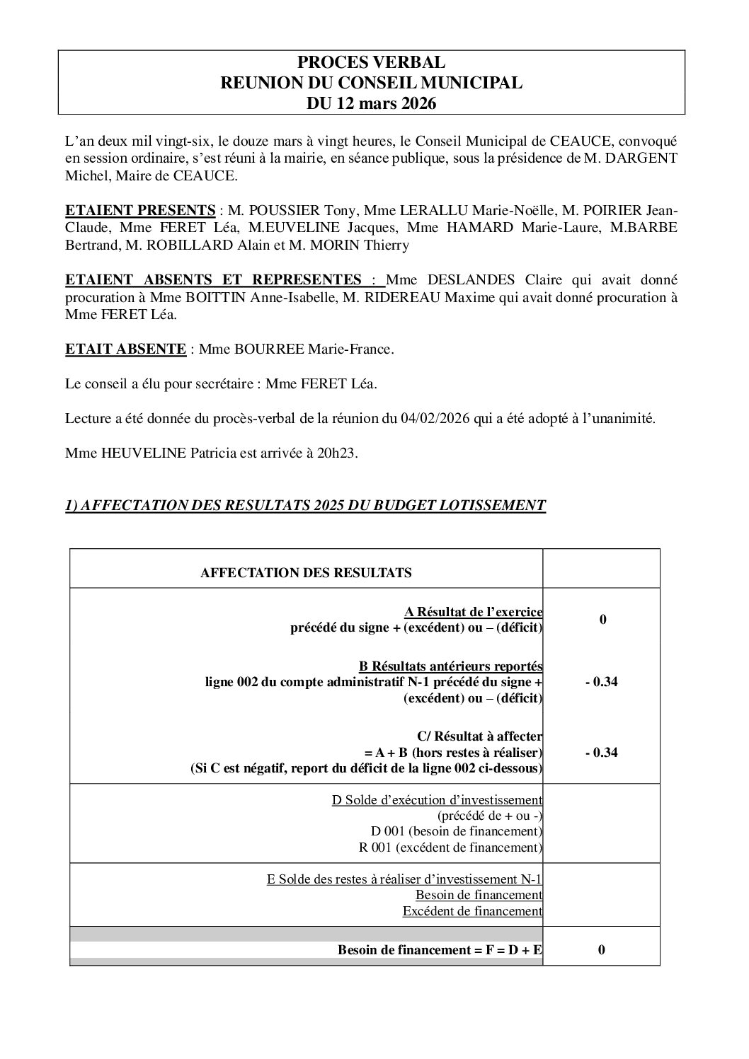 REUNION DU CONSEIL MUNICIPAL DU 12 MARS 2026
