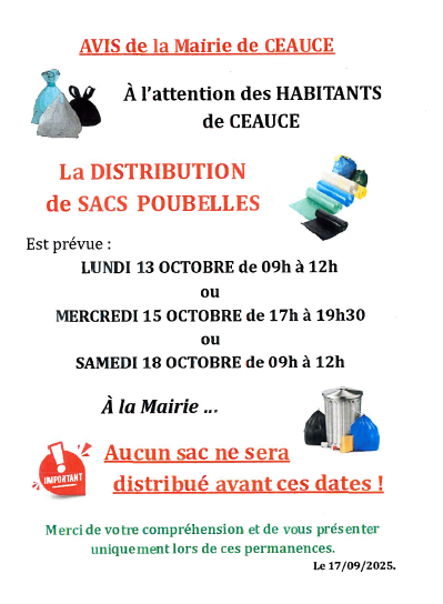 Dans le cadre de la nouvelle organisation de ramassage des ordures ménagères, des distibutions de sacs poubelles sont prévues